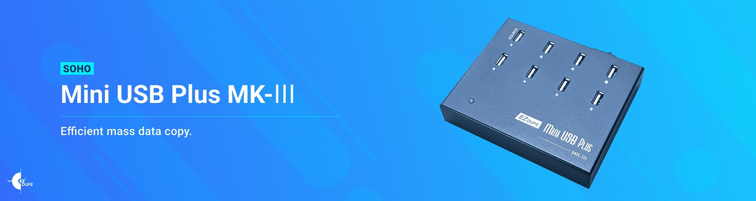 1st April 2019 The EZ Dupe 1-to-4 target Mini USB Plus is designed for users who need to copy a small number of flash drives. The zero-button interface design makes the operation simple and intuitive. With its mobile power supply, users can make data copies on-the-go without having to search for a power socket!