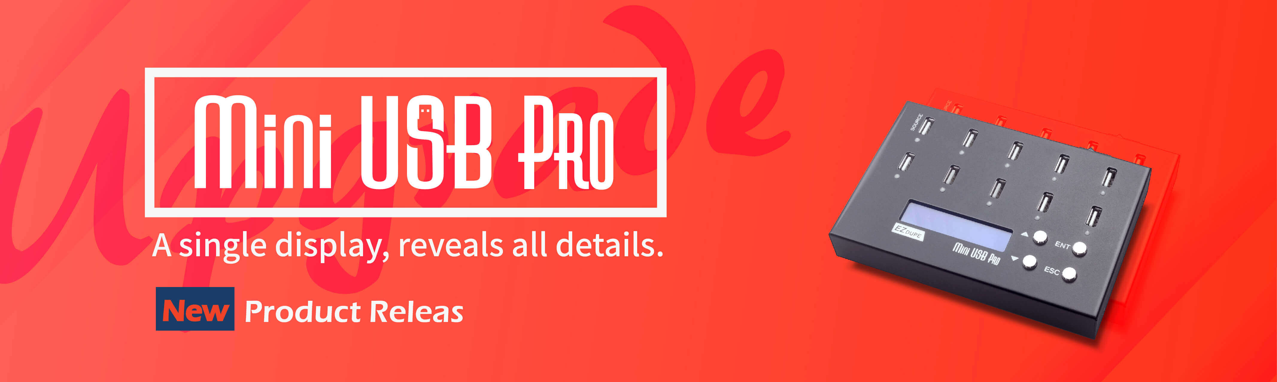 26th September 2019 EZ Dupe is proud to announce the release of new Mini USB PRO Duplicator. Copy 9 USB drives at the same time without connecting to a computer. The Mini USB PRO features multiple functions to meet different requirements, including Copy, Compare, Format, and Erase. With its compact design, it’s a great fit even for small or personal offices.