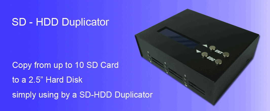 17th April 2015 SD-HDD duplicator easily and accurately copies 10 SD cards to a HDD at the same time without a computer or cumbersome software. It is useful to collect the data from different SD cards into one HDD. Unique Source Analysis function analyzes the SD cards content and intelligently copies only the data to speed up the copy time. Fast, reliable, convenient and cost-effective to operate, SD-HDD duplicator helps you to get more done in less time!